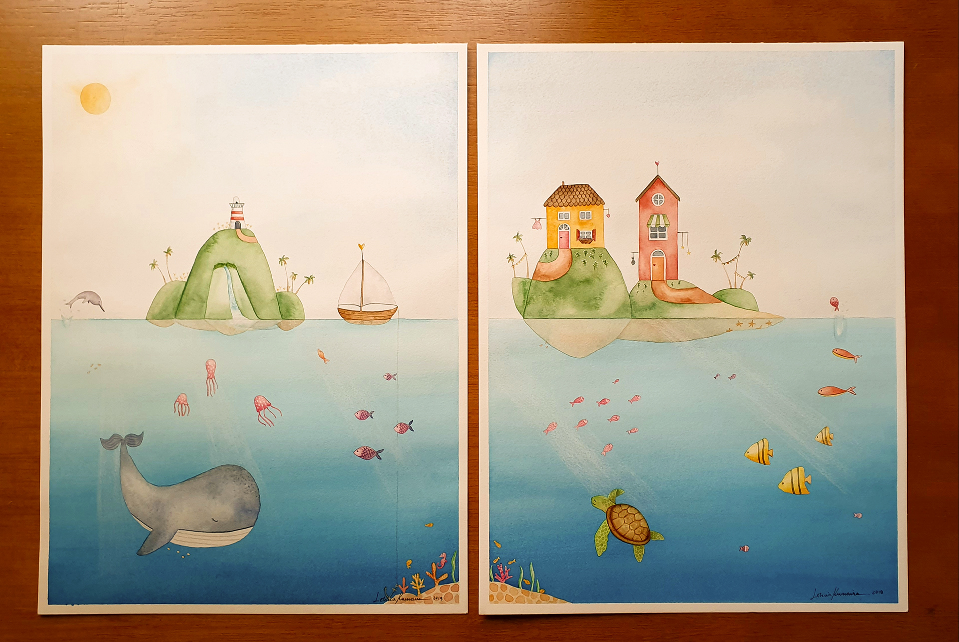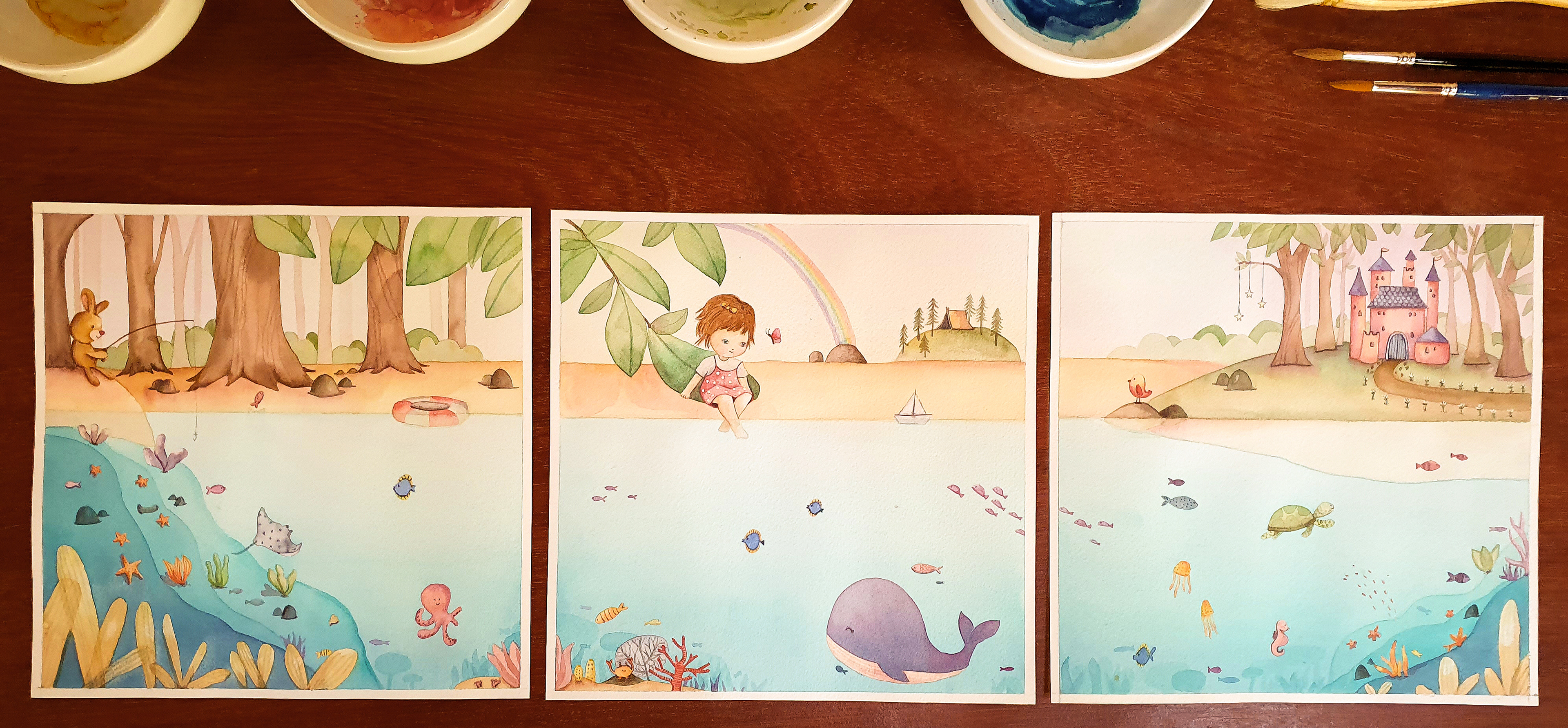 Algumas encomendas no tema fundo do mar que viraram quadros.